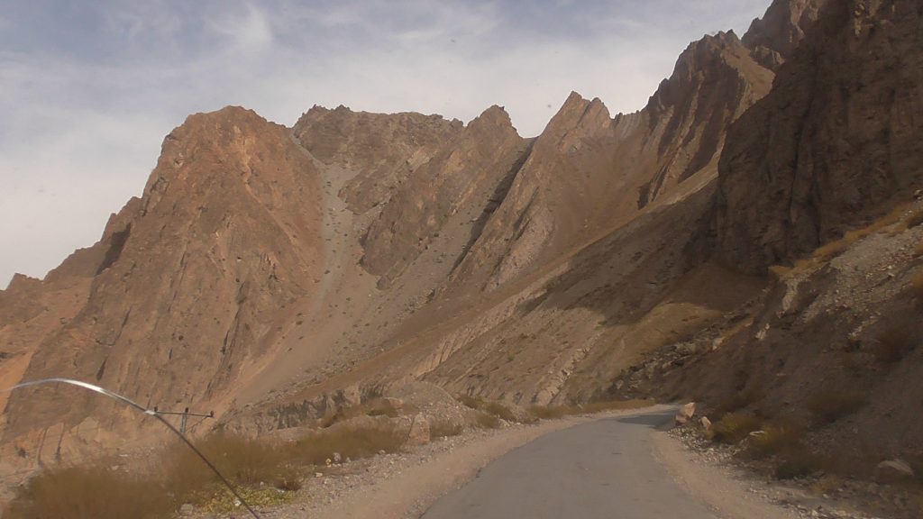 more pictures from Pakistan stark mountains through the cracked windscreen. The barren mountains often displayed a wealth of colour.